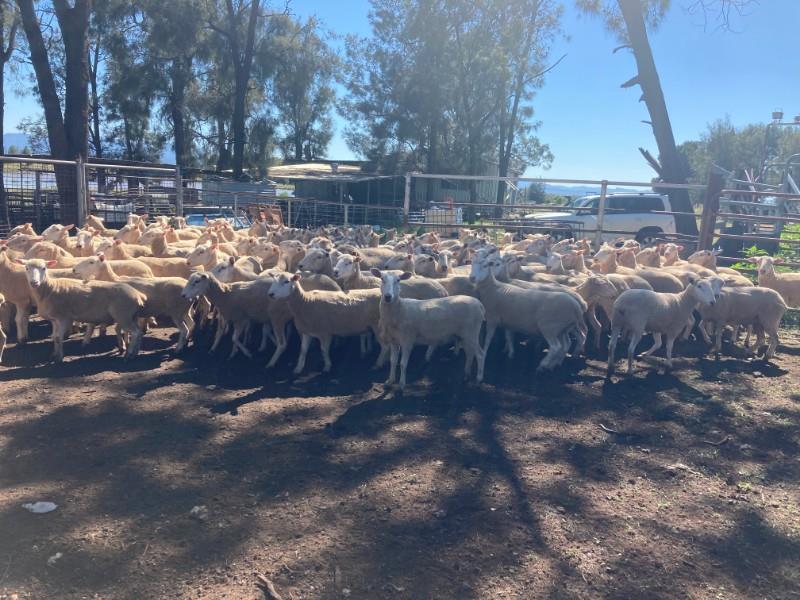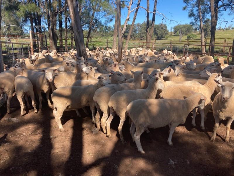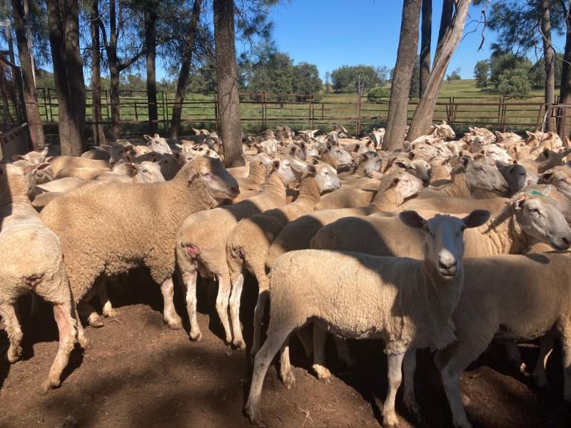 A LINE OF XB EWES. 70% 1ST X EWES BALANCE SHOWING POLL DORSET INFLUNUCE. THESE EWES HAD 132% OF LAMBS WEANED OFF THEM PRIOR TO 2% OF POLL DORSET RAMS PUT IN ON THE 4 /10. THEY HAVE NOT BEEN SCANNED, EWES SHOULD HAVE JOINED WELL NO GUARANTEES CAN BE GIVEN . ONLY SELLING THESE EWES TO RUN A MERINO FLOCK. 5 EWES SHOWING OLD DRY FLY STRIKE SCARES PRIOR TO SHEARING.