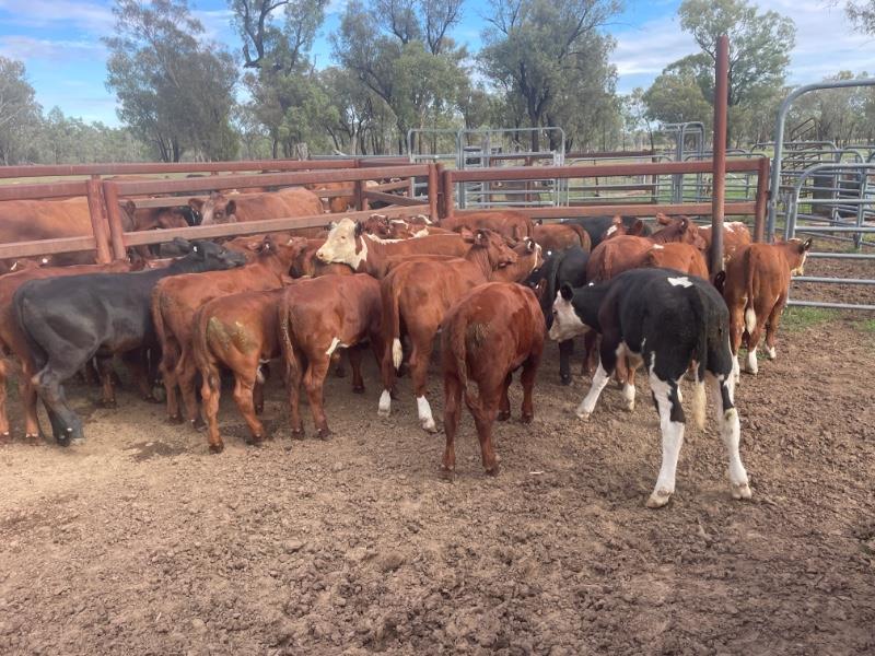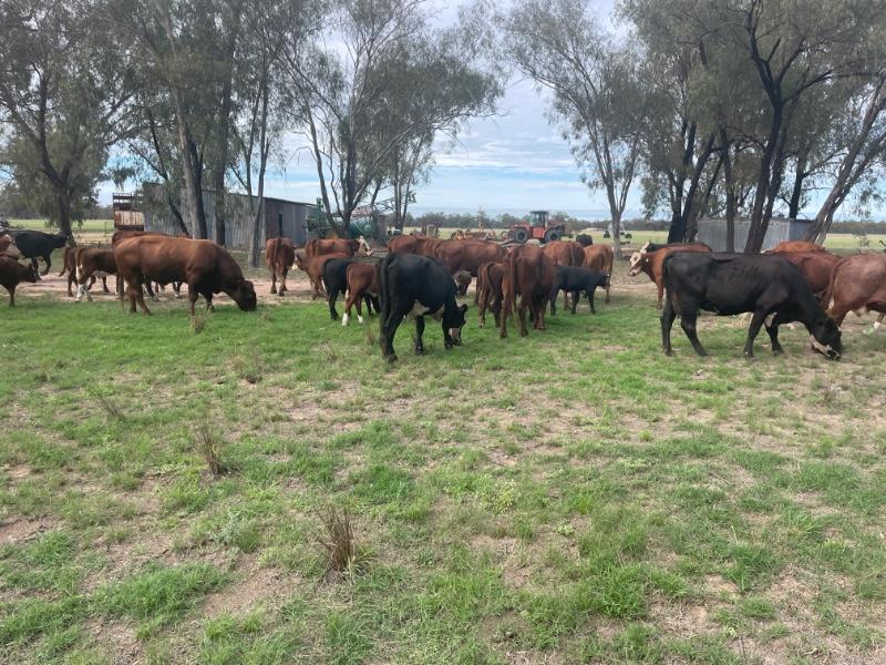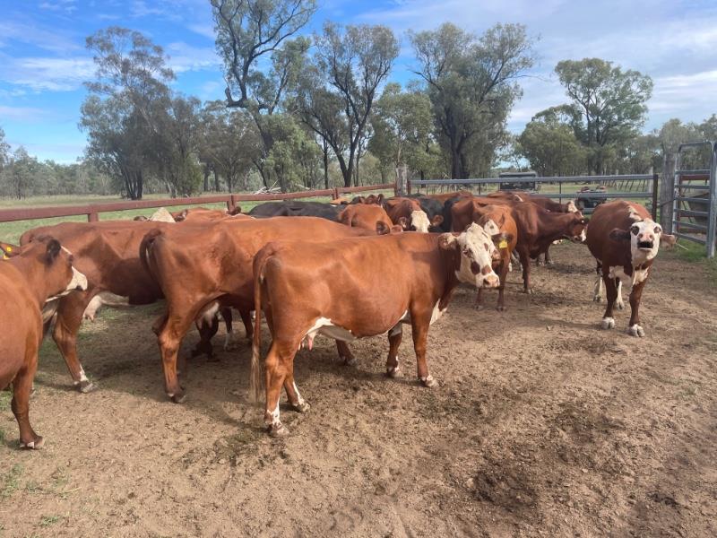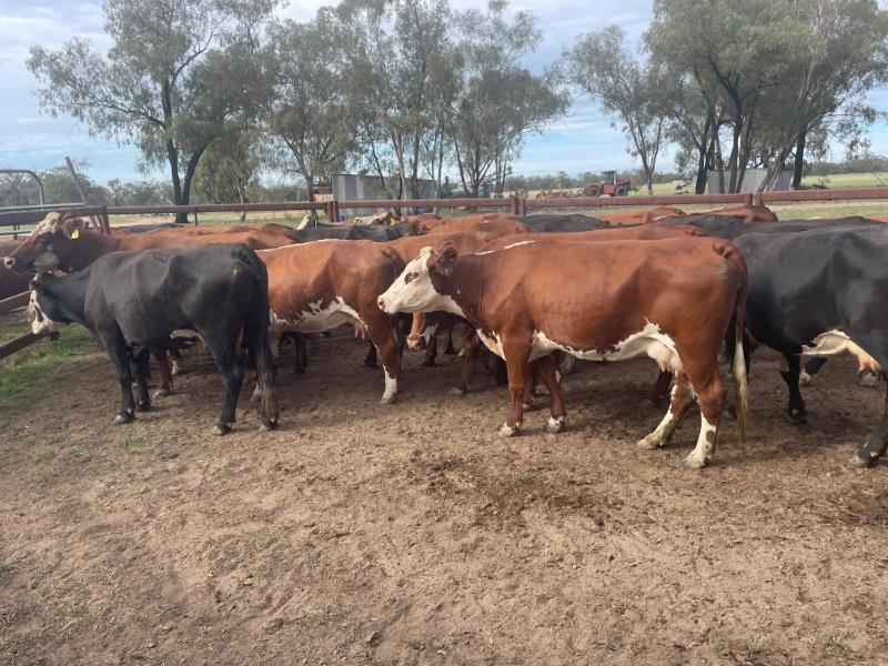 GOOD QUALITY SHORTHORN,HEREFORD & ANGUS COMPOSITE BREEDERS 3 1/2 TO 7 1/2 YEAR OLD. THESE MEDIUM TO GOOD MEDIUM FRAME COWS ARE ON THE IMPROVE SINCE A VERY DRY START AT CALVING. SOME CALVES TREATED FOR PINKEYE WITH ORBANIN AT ASSESSMENT. BUYERS AN OPPORTUNITY TO PURCHASE QUALITY COWS & CALVES THAT HAVE BEEN REDEPASTURED TO THE YAMBURGAN SHORTHORN BULL.