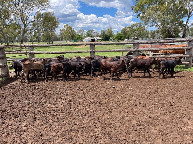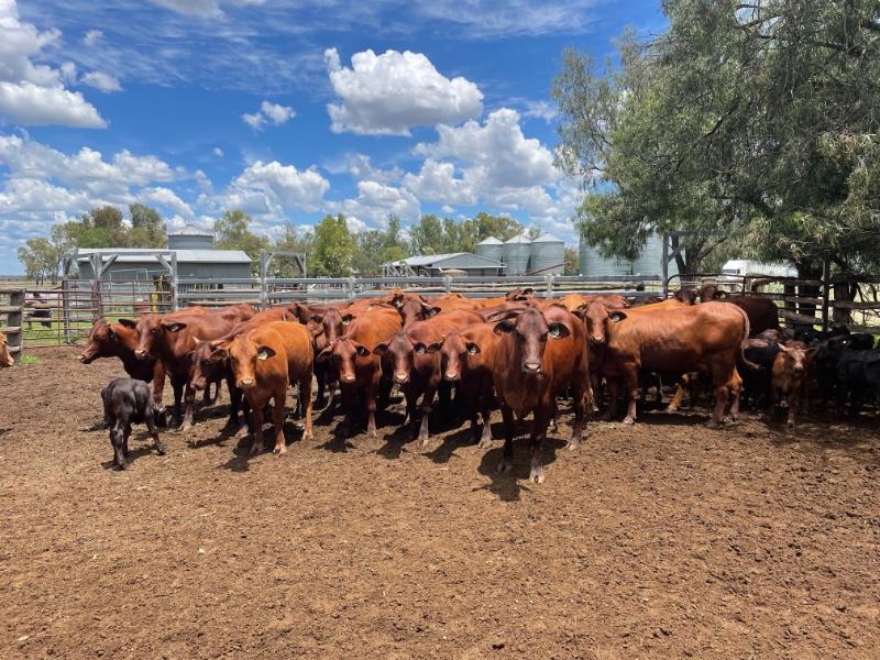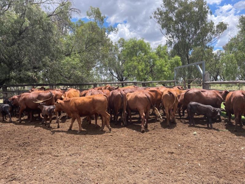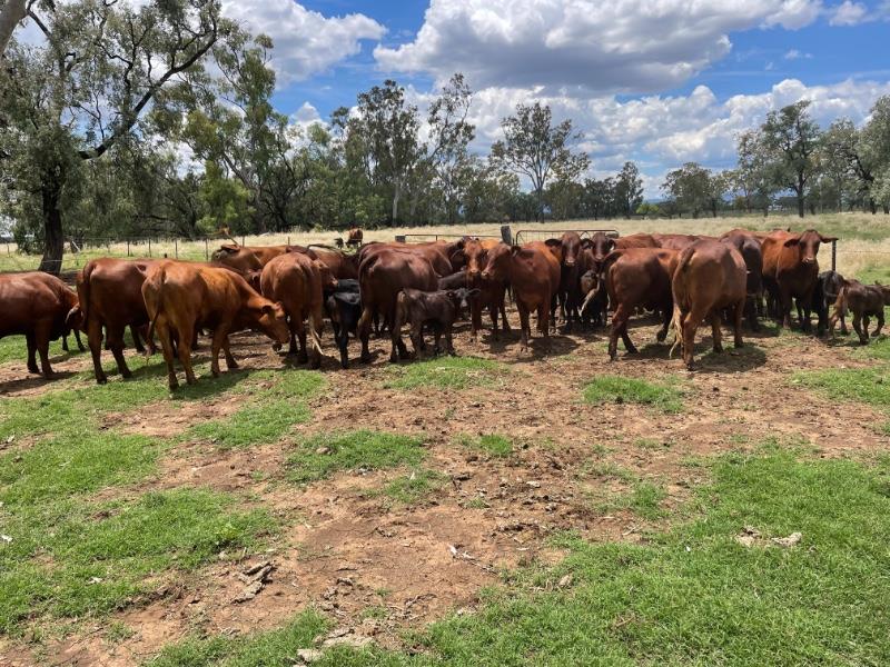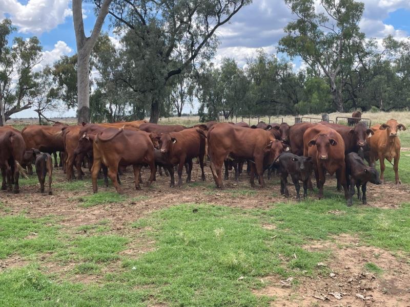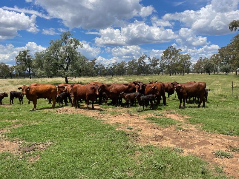 GOOD QUALITY SANTA & DROUGHTMASTER X HEIFERS WITH ANGUS X CALVES AT FOOT ,PRESENTING GOOD HEALTHY CONDITION .MAJORITY OF HEIFERS WOULD BE CLASSED AS GOOD MEDIUM FRAME WITH A COUPLE SMALLER FRAMED HEIFERS IN LOT.HEIFERS ARE MILKING WELL & DOING GOOD JOB ON THEIR CALVES. IF GIVEN THE CHANCE THESE WELL BRED HEIFERS WILL GROW INTO LARGE FRAME PRODUCTIVE BREEDERS.