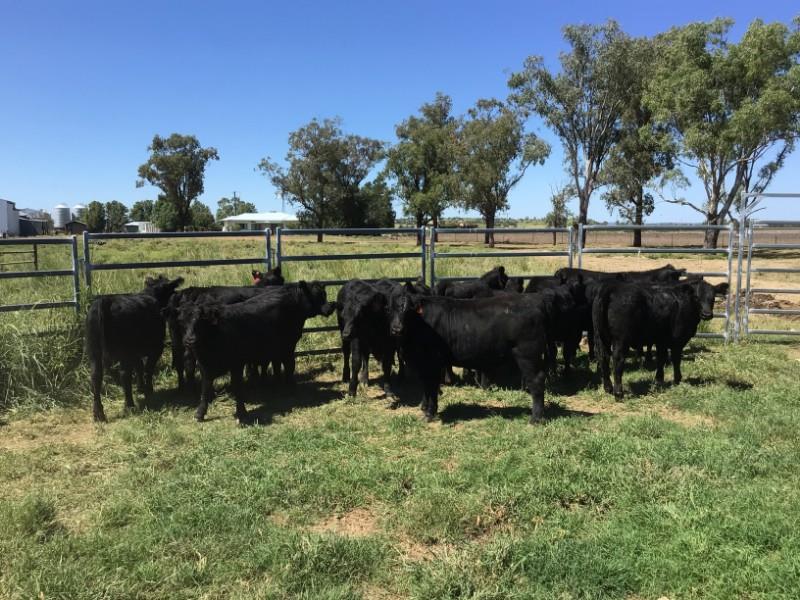 TOP QUALITY ANGUS WEANER HEIFERS PRESENTING IN FORWARD CONDITION.WEIGHT RANGE 230KGS TO 349KGS AV 287KGS FULL . HEIFERS OUT OF WELL BRED KANSAS BLOOD ANGUS COWS BY QUALITY GETT ANGUS BULLS ,BASED ON TEMANIA EMPEROR & BOWEN BLOODLINES.THESE HEIFERS ARE GRASSFED & ANTIOBOTIC FREE.NO BATHURST BURR NOTED IN COATS,SLIGHT CHANCE OF SOME,WITH SOME GREEN BATHURST BURR IN PADDOCK. PURCHASERS AN OPPORTUNITY TO PURCHASE QUALITY ANGUS HEIFERS FOR BREEDING PURPOSES OR GROW OUT FOR PREMIUM ANGUS FEEDER OR SLAUGHTER MARKETS.