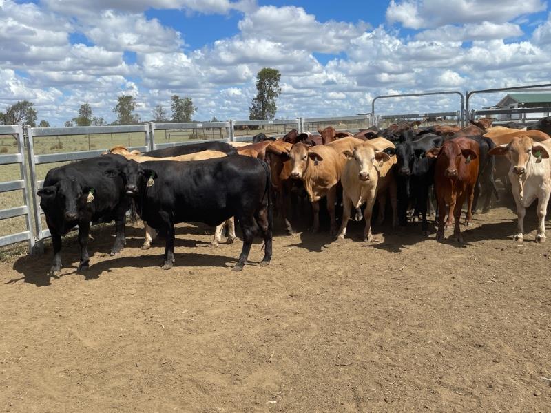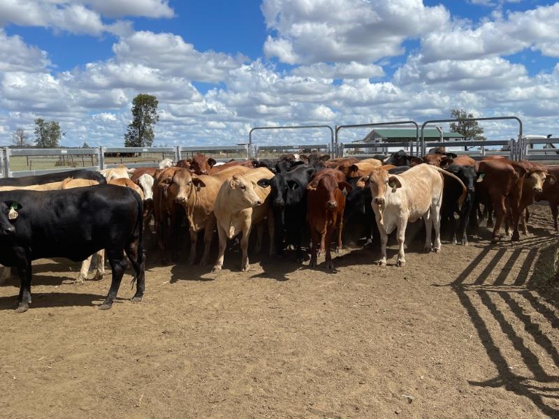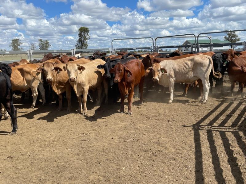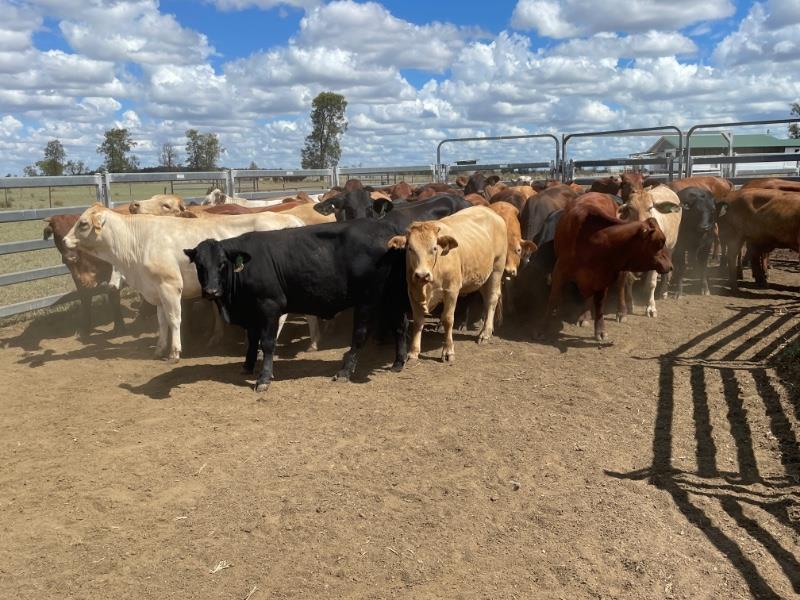 WELL BRED LINE OF MEDIUM TO GOOD MEDIUM FRAME URELLA PASTORAL CLERMONT BRED HEIFERS, PTIC BLUE TAG TO THE DURHAM TROPICAL BULLS, 2 STATION BRANDS. HEIFERS SHOWING BUFFALO FLY MARKINGS AROUND EYES. 1 HEIFER HORNS TIPPED AT PREG TESTING.