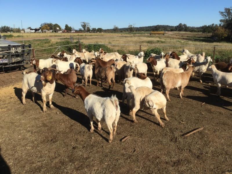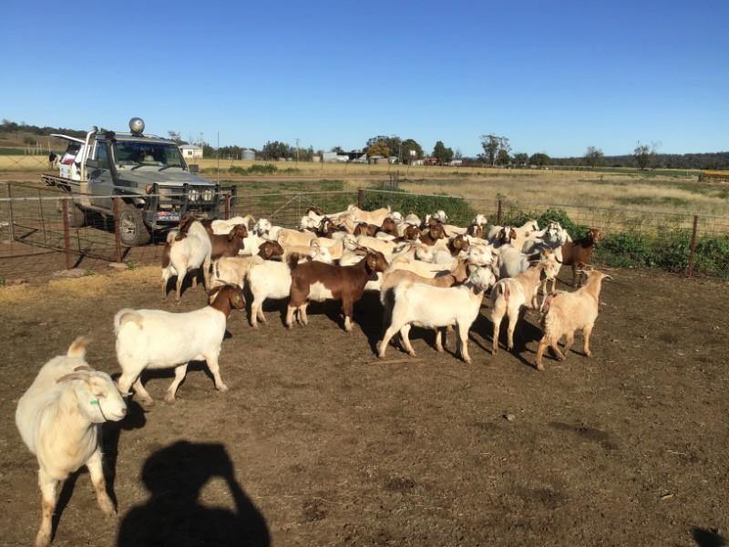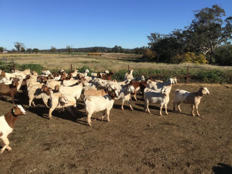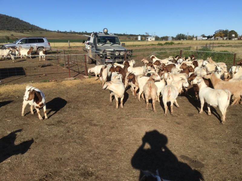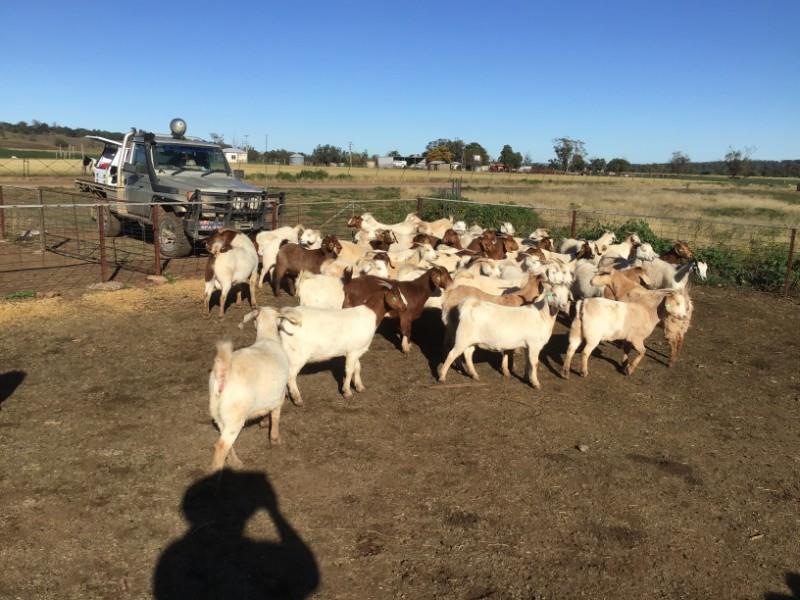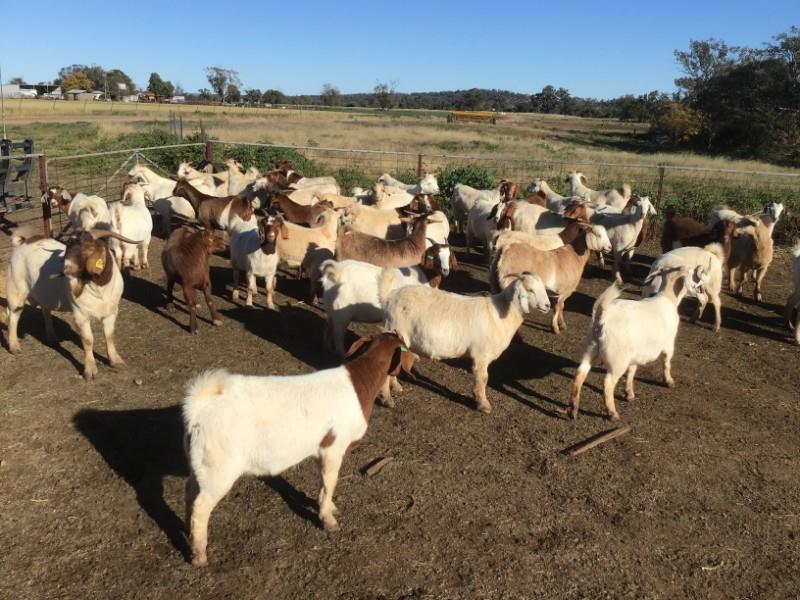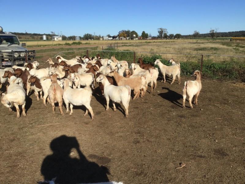 NICE LINE OF YOUNG BOER X DOES CONTINUOUSLY DEPASTURED TO THE BOER BUCK.VENDOR WILL PULL
