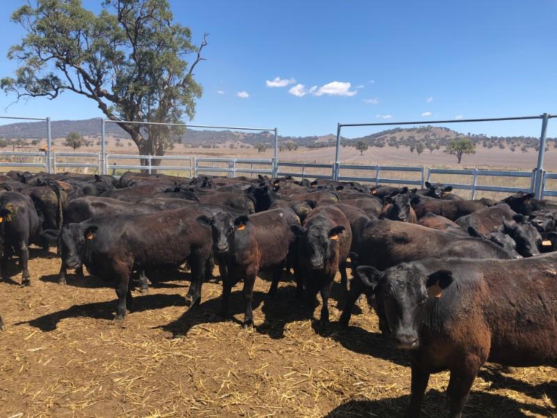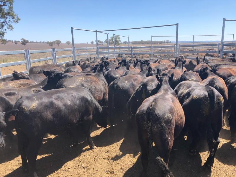 70 head a fair run out the gate of a very even line of 117 steers all over 420kg at assessmentPrincipally Good quality EU steers in fresh store to forward condition. They have been running on good crop with access to roughage. Rapidly improved with warm weather and quality crop. scales show most gaining over 2 kg/day since last weighing. Cattle held over a week( not offered) , returned to crop. Allowed 1 kg only in ADG.Parraweena has always invested strongly in quality seed stock breeding this attractive run of Angus steers with length and scope. Bred with flexibility to satisfy most high quality markets including both grain or grass.I noticed 4 head with old light eye scar in the eye. There were 47 of the 117 head with old ringworm scars showing. Visible in both photos & videos.The flexibilty to feed or grow onto most high value markets with a strong marbling history. Data available showing very high marbling performance from previous feedlot kills.