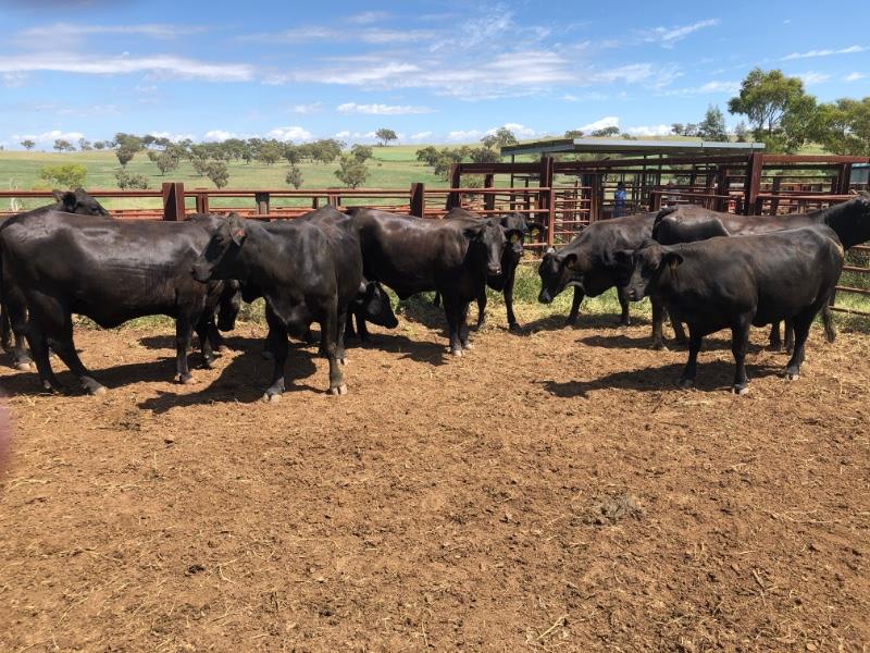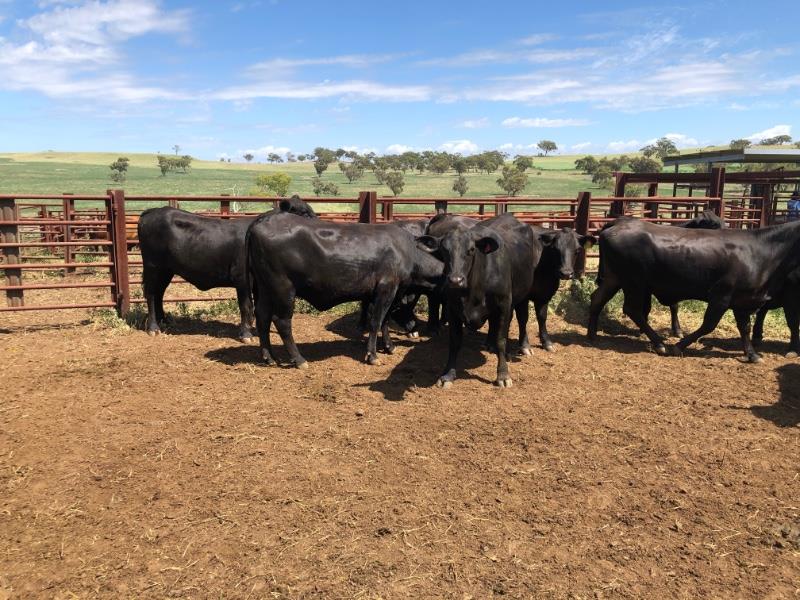A NICE SMALLER LINE OF EU PTIC IN CALF ANGUS SANTA CROSS HEIFERS. IN FRESH FORWARD CONDITION REFLECTING GOOD MANAGEMENT AND AN IMPROVED SEASON. PURCHASED IN OCTOBER 22 FROM THE HIGHLY REGARDED KIRKWOOD FAMILY TRUST “DISNEY STATION” JOINED TO QUALITY TRIO ANGUS BULLS WITH EBVS ATTACHED -SELECTED FOR LBW & REPRESENT AN OPPORTUNITY TO BUY GOOD POTENTIAL BREEDERS WITH YEARS OF BREEDING IN FRONT OF THEM. RON POTTER FARMS LIVESTOCK PURCHASED THESE WITH THE INTENT OF AN AI PROGRAM. DRY WEATHER SAW THESE TRADITIONALLY JOINED TO ANGUS BULLS FOR A SHORT 62 DAY PERIOD. ALL THE BLACKS WITH ONE LIGHTER HEIFER.