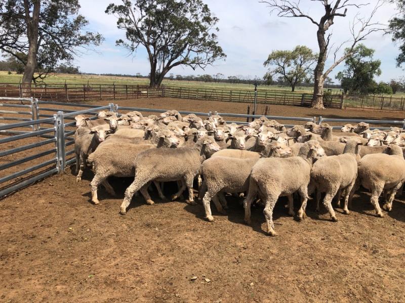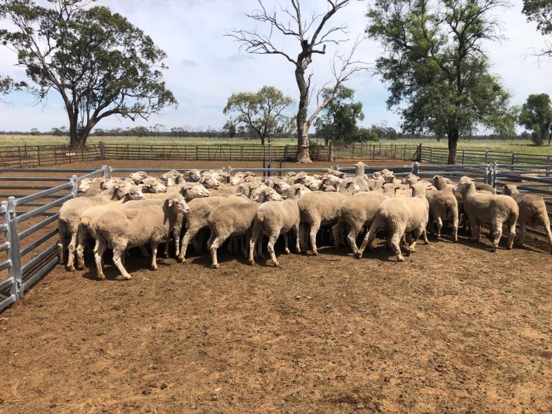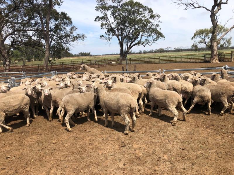 A SMALL LOT OF 72 MERINO EWES, LARGE FRAME. 43 WHITE TAGS 2017 DROP AND 29 BLACK TAGS 2016