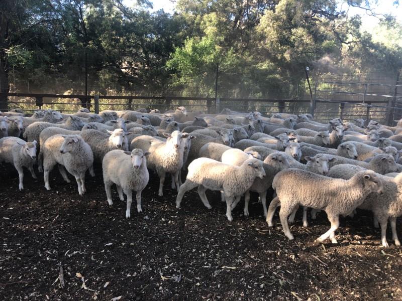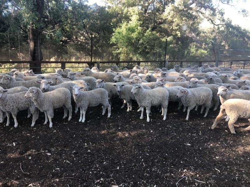 A QUAILTY LINE OF 1ST X EWE LAMBS AV 28 KGS. OUT OF LARGE FRAME GRASS BLOOD EWES BY DARJEELING BORDER LEICESTER RAMS (TATTY KEEL BLOOD). LAMBS WILL CONTINUE TO RUN ON EWES TILL DELIVERY. 8 EWE LAMBS HAD TAILS RINGED AT ASSESSMENT.