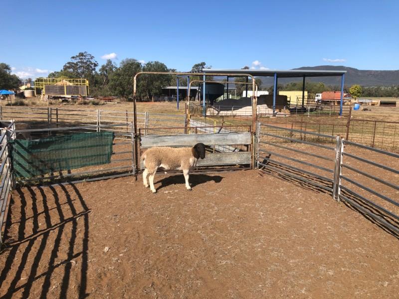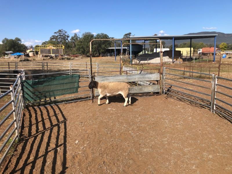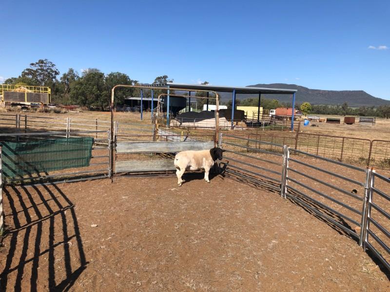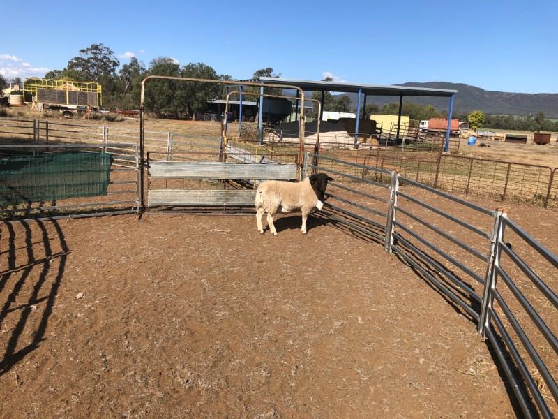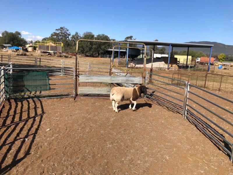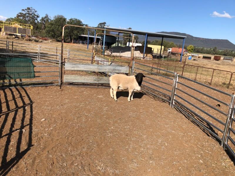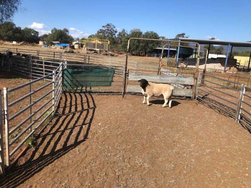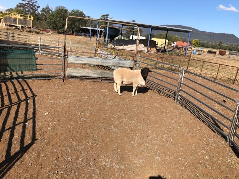 LOT 608: 10 GOOD QUALITY 3D DORPER RAMS. 9 RAMS MAR/APR 2019 GREEN TAGS, 1 RAM OCT/NOV 2018 DROP ORANGE TAG.THE GUEST FAMILY HAVE BEEN BREEDING DORPERS FOR 18 YEARS AS 3D DORPERS. THESE RAMS ARE OFF THE OAT CROP, SHOWING PLENTY OF STAND UP, LENGTH AND READY TO GO. I HAVE TAKEN PHOTOS OF EACH RAM AND A VIDEO OF RAMS THROUGH THE GATE.